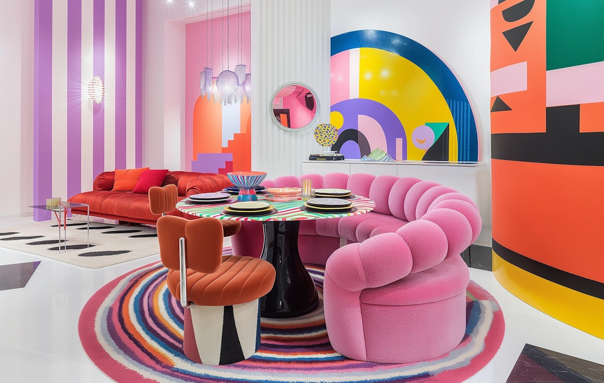 A bold, colorful workspace tailored for a graphic designer who thrives in creative environments.